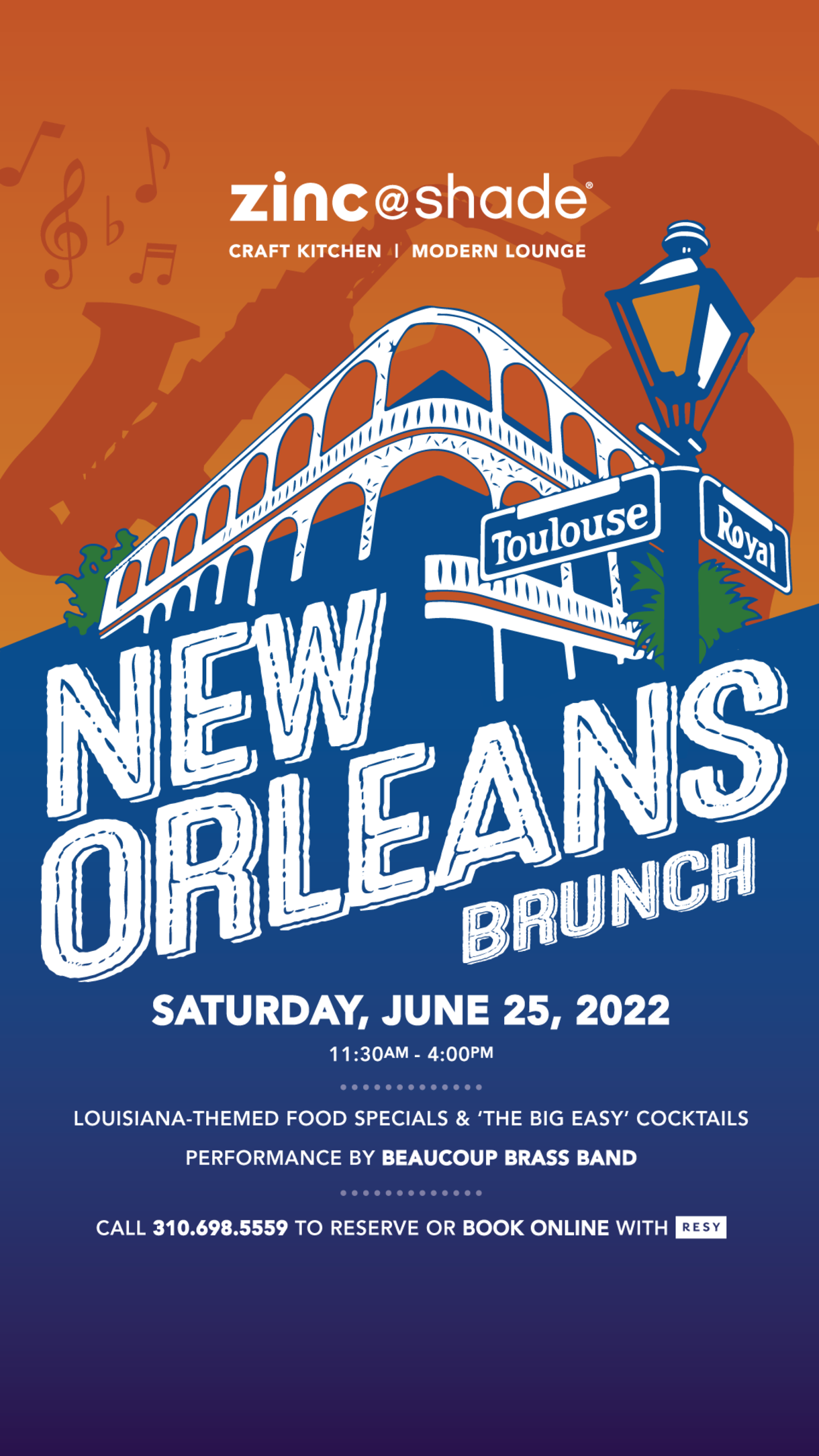 New Orleans Brunch Who is ready for a plate of Gumbo or a Banana Fosters French Toast? Add The Beaucoup Brass Band and a Hurricane cocktail and we got ourselves a party New Orleans would be proud of… Join us at the Shade Hotel Manhattan Beach on Saturday, June 25th from 11:30am-4pm in the Courtyard … Continue reading “New Orleans Brunch at Shade Hotel Manhattan Beach”