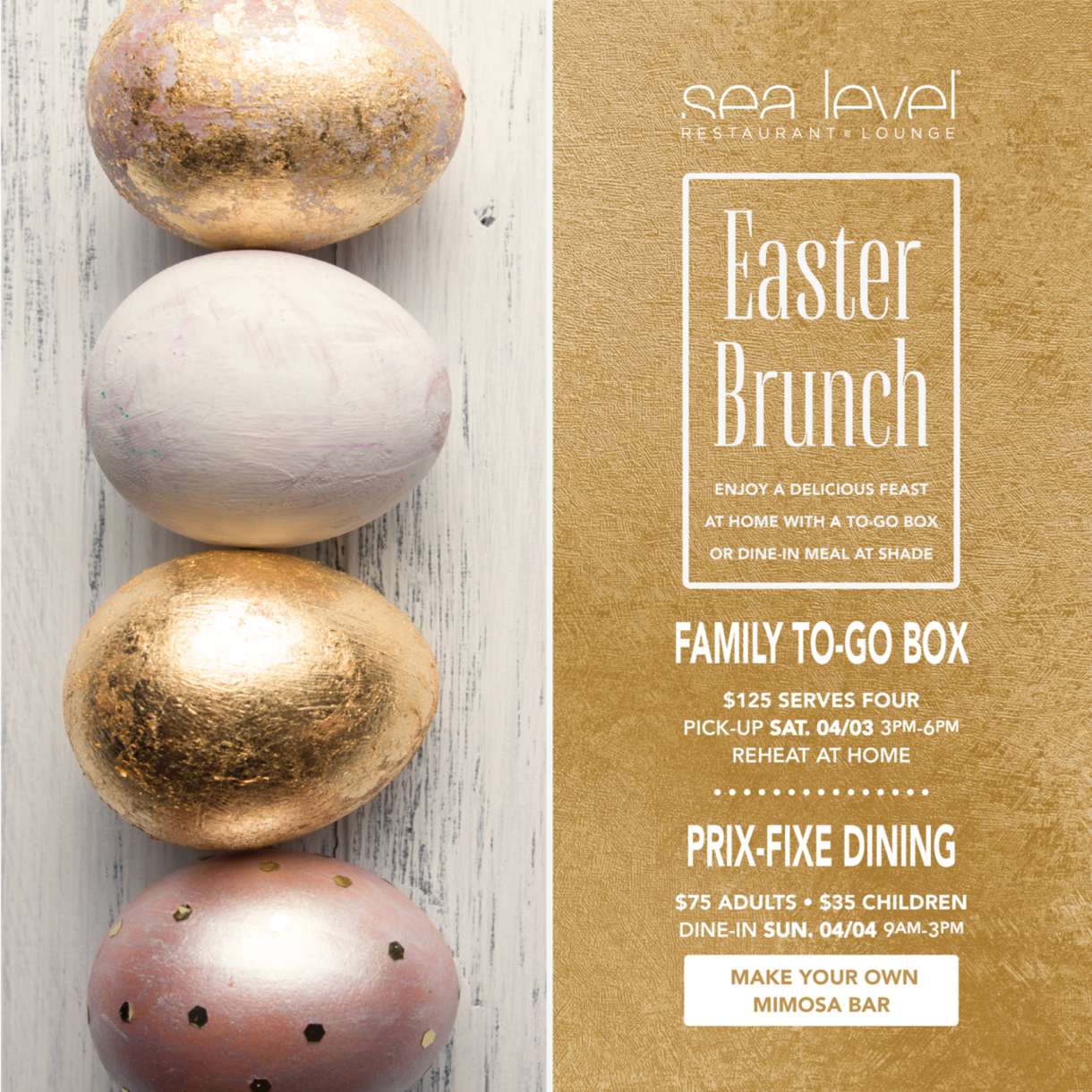 Fresh air, ocean views and culinary delights this Easter! Enjoy an elegant three-course brunch at Sea Level Restaurant or celebrate Easter at home with the convenience of a family to-go box that is picked-up on Saturday, April 3rd 2021. EASTER PRIX FIXE DINING Sunday, April 4, 2021 from 9am-3pm $75 per adult • $35 per … Continue reading “Take Home Easter Dining Options from Shade Hotel Redondo Beach”