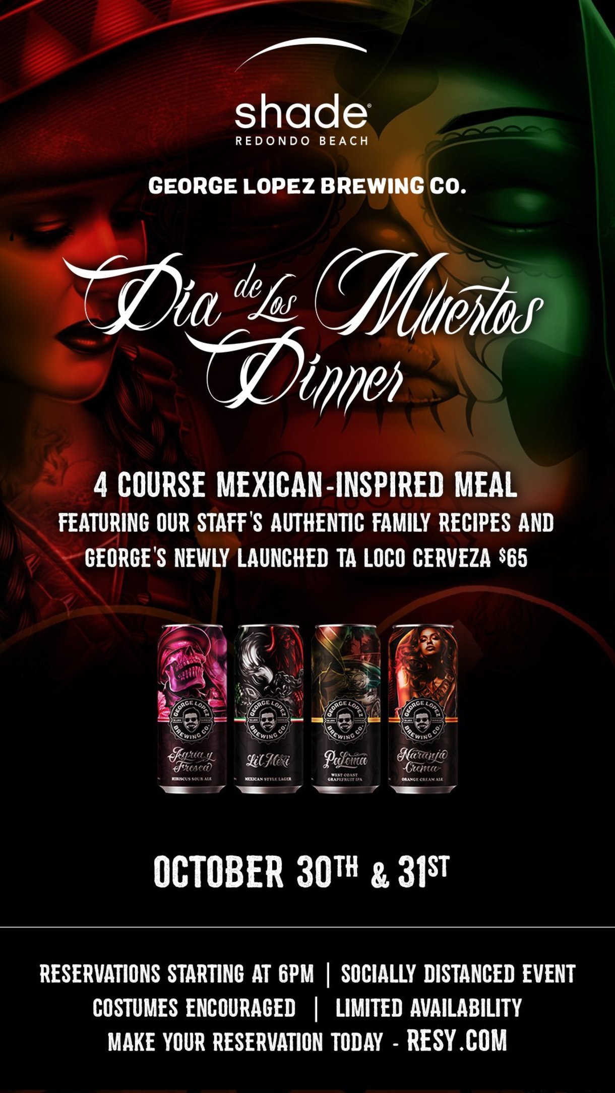 Shade Hotel Redondo Beach is proud to present the rooftop Dia De Los Muertos Pairing Event with George Lopez Brewing Co. Enjoy authentic Mexican food that come from our staff’s sacred family recipes. Each course will be paired with George Lopez Brewing Co. beers brewed up the street at The Brews Hall. Dia de los … Continue reading “Dia de Los Muertos Dinner at Shade Hotel Redondo Beach”