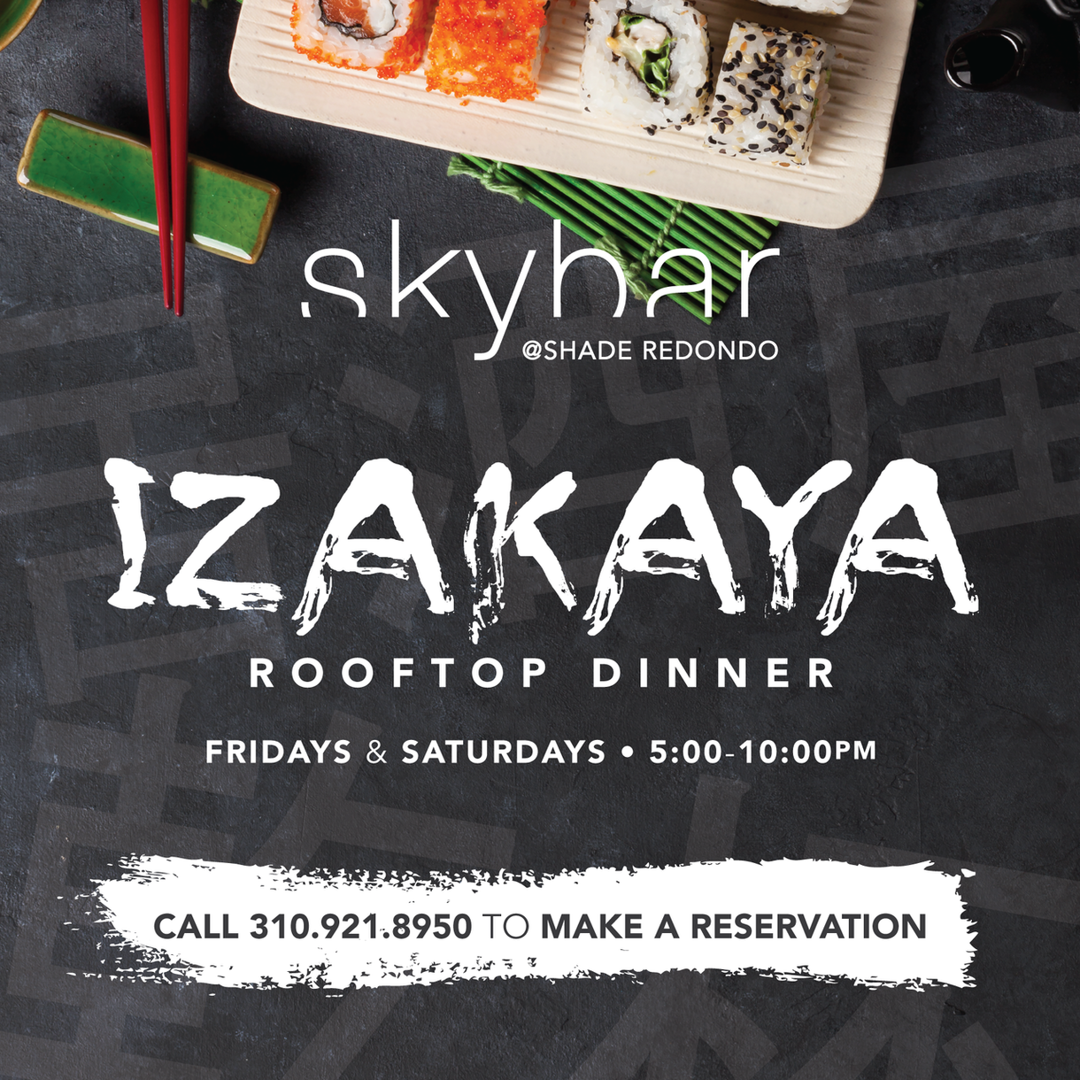 Escape to the rooftop for a unique Pop-Up Dinner experience at skybar located in the beautiful Shade Hotel Redondo Beach! What could be better than hand-crafted cocktails & Japanese Cuisine on the rooftop SkyBar with sweeping coastal views?! This unique Japanese cuisine dinner experience is available Friday & Saturday nights this summer. Call 310.921.8950 to … Continue reading “IZAKAYA Pop-Up Dinner at skybar @ Shade Redondo”